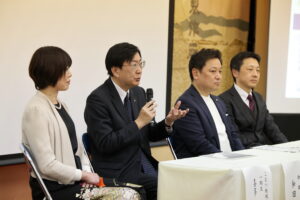 最後にはトークセッションを開催。ビジネスプランの講評にとどまらず、未来創造塾がこれから目指す地域の姿や、人材育成の意義について議論が交わされました。